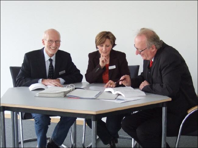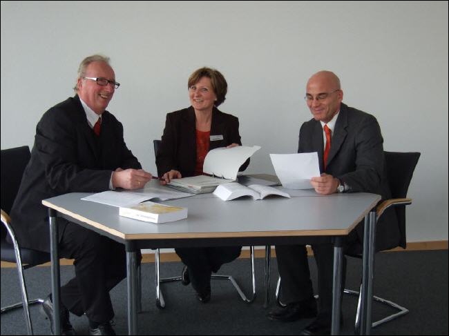Michael Steig (rechts) während der Beratungstätigkeit zum Aufbau des QM-Systems beim Studieninstitut Westfalen-Lippe, Fachbereich Fortbildung, zusammen mt Barbara Rütter (Qualitätsmanagement-Beauftragte) und Thomas Hüttemann (Fachbereichsleiter) |